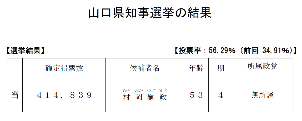 山口県知事選挙については、2月8日に投開票され、おかげをもちまして、連合山口が推薦した「村岡 嗣政」候補は、見事当選を果たされました。 今選挙における今日までの日夜を問わぬ皆様の多大なるご尽力とご奮闘に対し、心より感謝いたします。