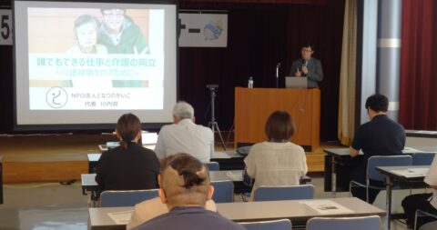 セミナーでは、NPO法人「となりのかいご」代表の川内潤氏を講師に迎え「誰でもできる仕事と介護の両立」をテーマに講演を行いました。川内講師は「これから団塊の世代670万人が一気に介護認定を受ける時代に入る。毎年10万人が介護離職をしている中で、男性だから介護しなくていい時代は終わっている」と述べ、「親孝行のために自分のキャリアをあきらめて介護に向かうということが良い介護ではなく、外部サービスなどに任せられることは任せ、家族としての役割を担うことに注力し、良好な関係を築くことが結局良い介護に繋がっている」と話されました。