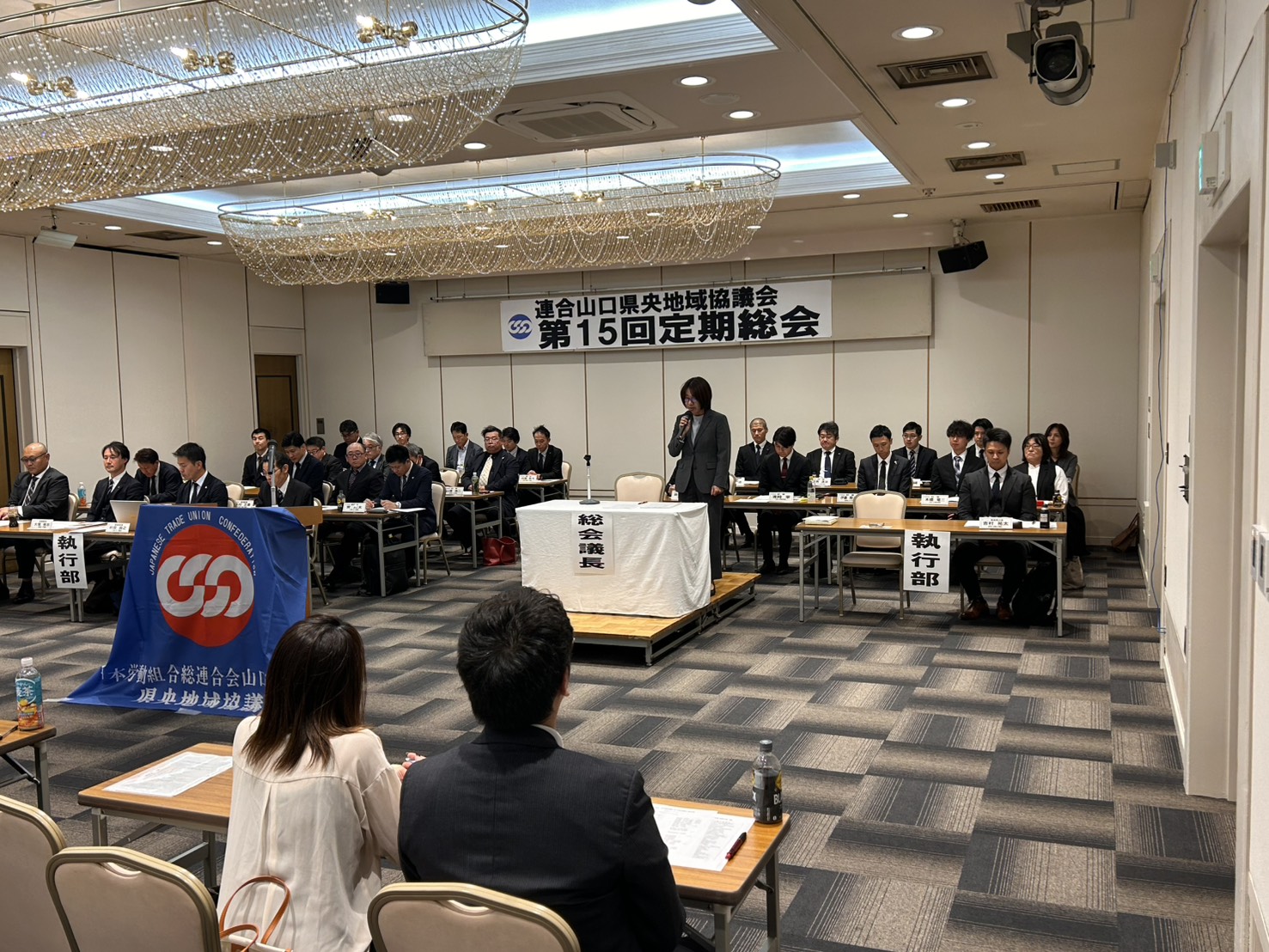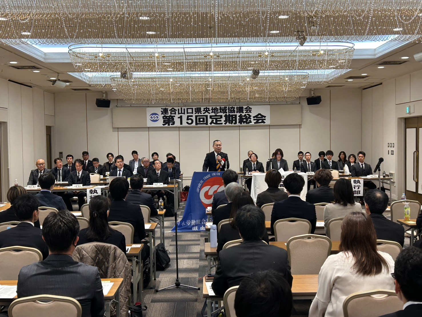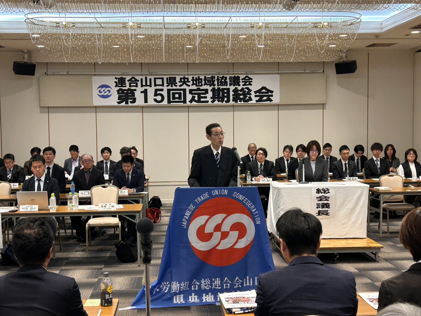 当日は、中元直樹連合山口会長をはじめ推薦議員6名のご来賓を迎え、執行部、代議員、特別代議員、傍聴者を含め計83名が出席しました。